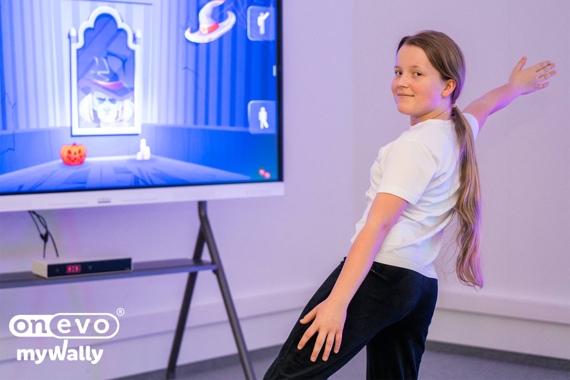 onEVO myWally detects and interprets the user’s movements, allowing interaction with educational and therapeutic games and applications. The device does not require physical controllers — the entire body becomes a tool for control.